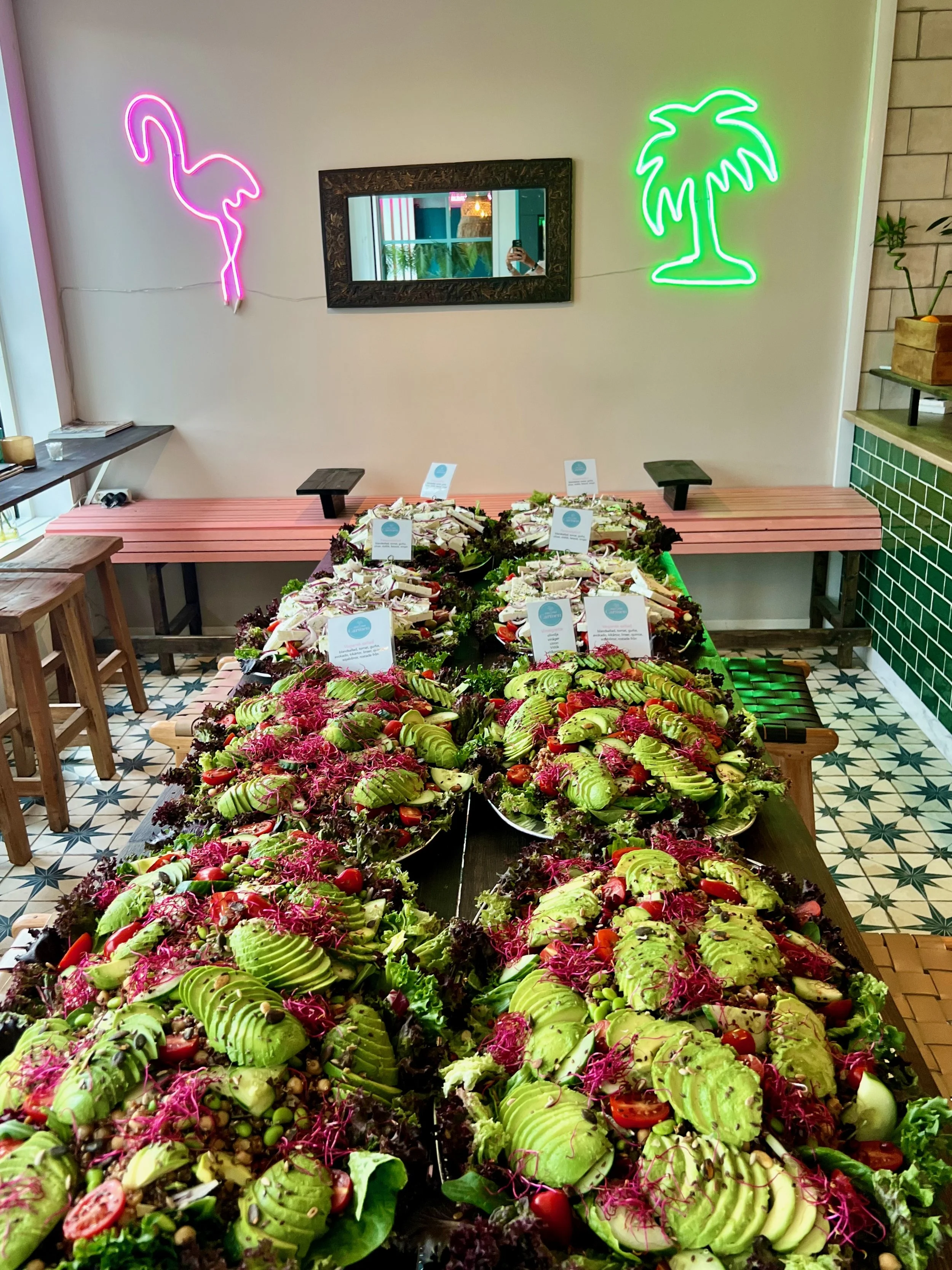 OUINOASALLAD M AVOKADO, KIKÄRTOR, SOJABÖNOR, VINAIGRETTE & RÖDBETSHUMMUS